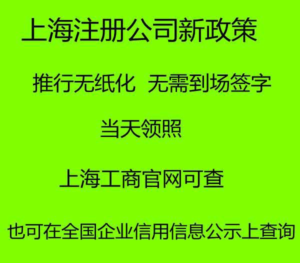 上海注册公司新政策 无需到场 加急当天出照 官网可查