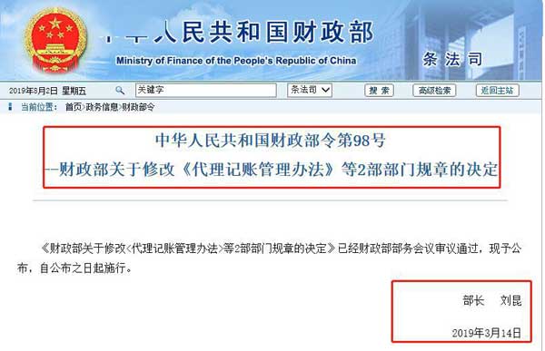 政策早有说明,去年3月份,财政部发布的《财政部关于修改<代理记账管理办法>等2部部门规章的决定》就给出来明确规定。