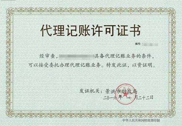 1、代理记账机构必须拥有代理记账许可证书。