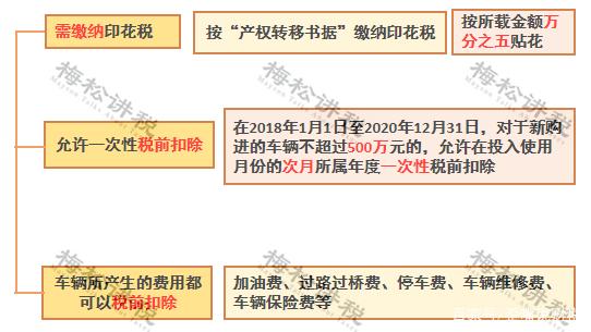 而且,公司购入的固定资产,如果单价不超过500万元,可以一次性在企业所得税前扣除,如果购买的是车辆,那么车辆发生的各种费用也可以入账并税前扣除了。